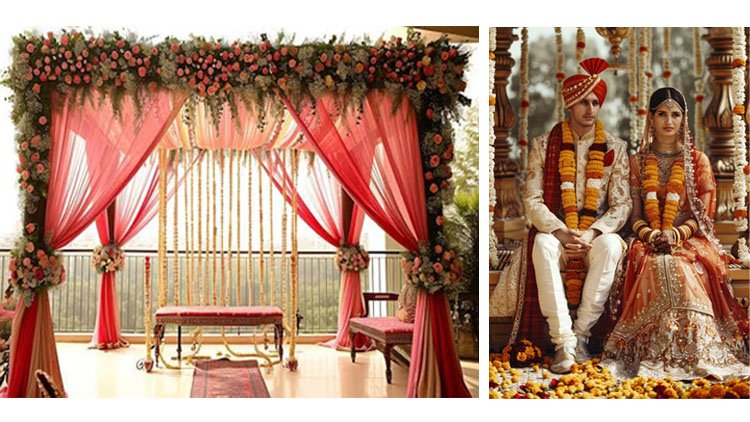 Four Pillars: The pillars that support the mandap symbolize the fundamental pillars of a successful marriage: Dharma (duty and righteousness), Artha (prosperity and wealth), Kama (desire and love), and Moksha (spiritual liberation).